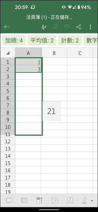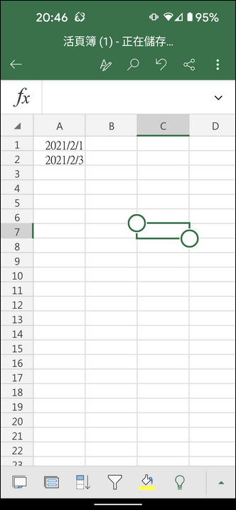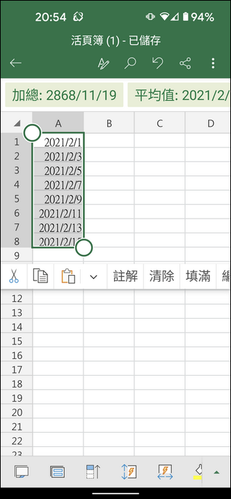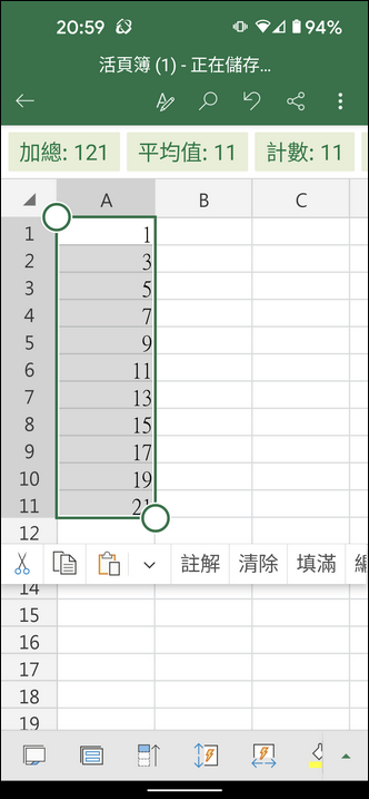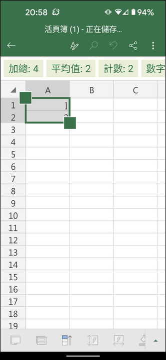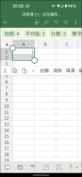 在手機中的 Excel 如果要執行自動填滿的動作,該如何操作?