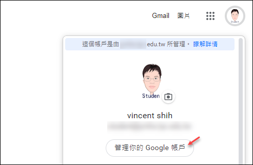 在個人頭像之下,進入管理你的 Google 帳戶。