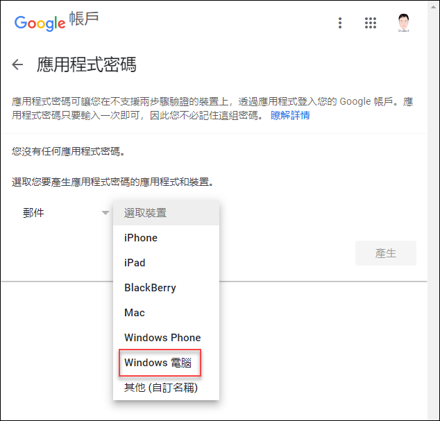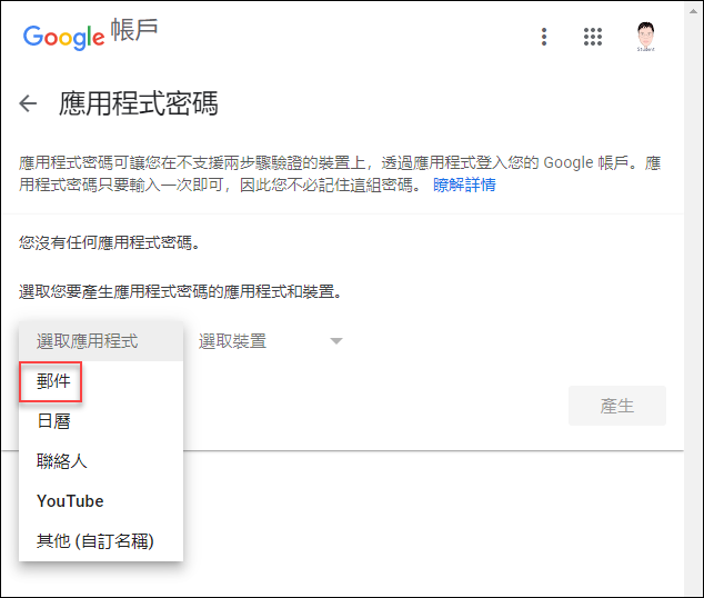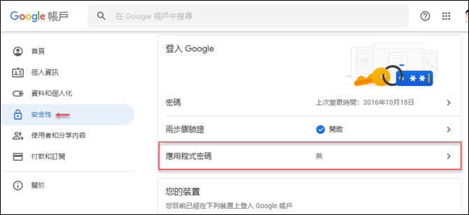 在「安全性」頁面下,找到「應用程式密碼」點入。