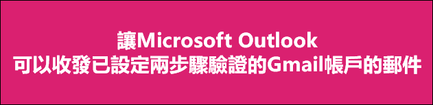 最近因為想要提升安全性,所以要將全部的 Google 帳號都啟用兩步驟驗證,但是也發生了先前已設定的 Outlook 程式無法正常收發 Gmail 郵件,請依照以下步驗做修改。