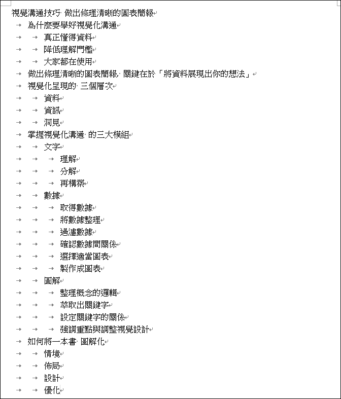 其中第一層不需出現Tab鍵符號,第二層出現一個Tab鍵符號,第三層出現二個Tab鍵符號,第四層出現三個Tab鍵符號。
