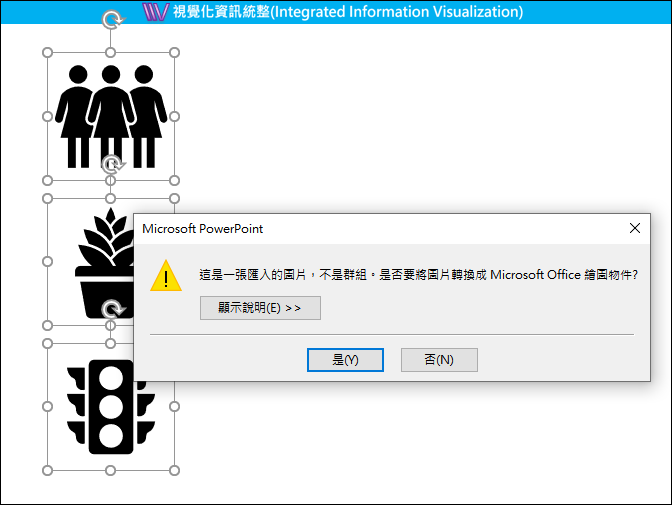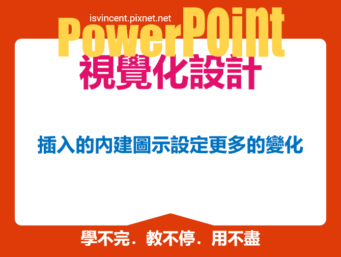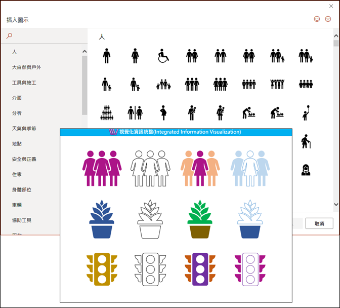 在 PowerPoint 2019 裡有「插入圖示」的功能,預設的色彩是「黑色」。如何能進一步的讓圖示多彩多姿呢?