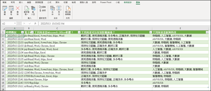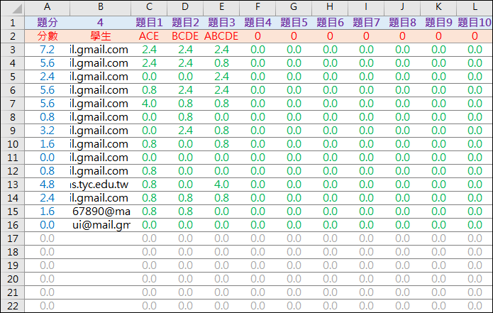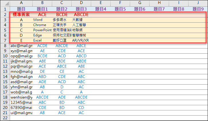 *Excel-設計Google表單測驗多選題並以Excel計算分數