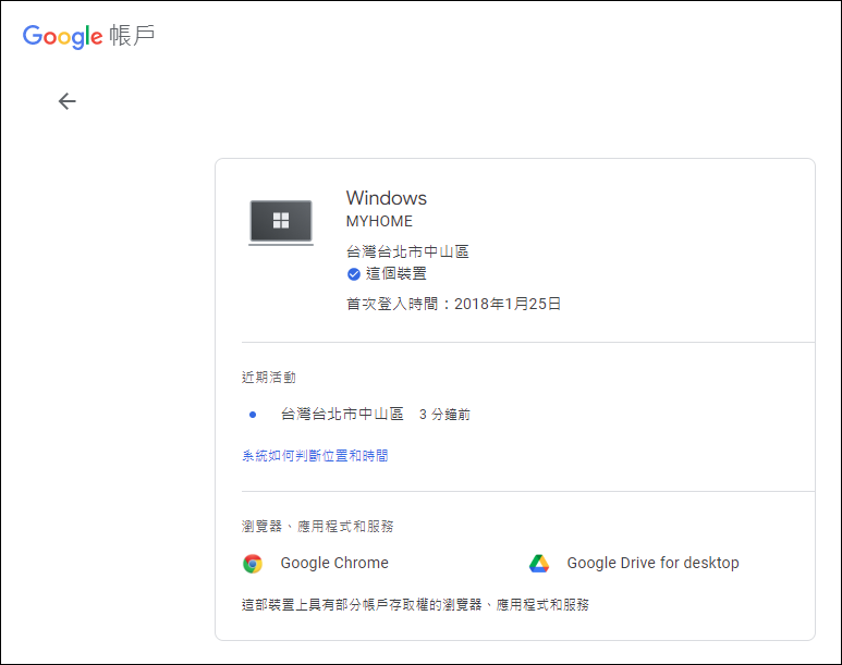 即可看到該帳號所登入的裝置。你可以發現登入裝置的歷史記錄,要注意到那些裝置是目前還在使用的(目前的工作階段)