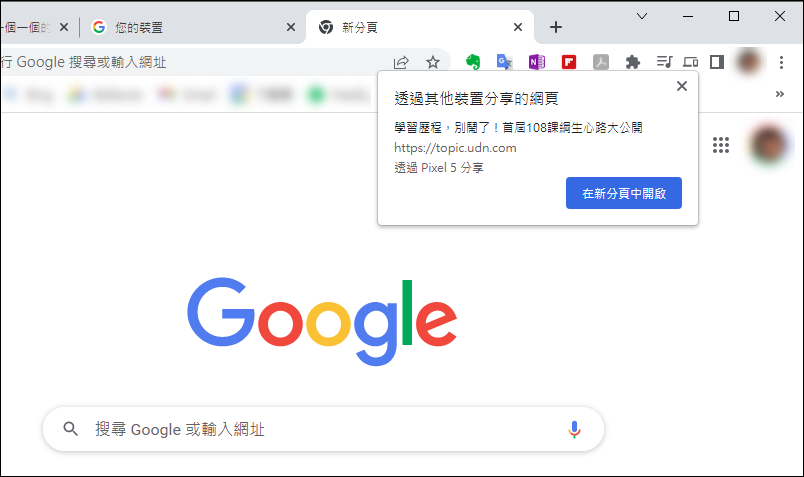在電腦的 Chrome 瀏覽器即會數到該訊息,點選後即可進入該網頁。