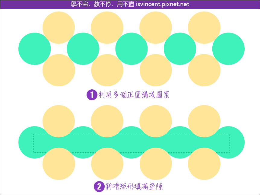 1. 如下圖新增多個圓形,並且排成下圖中的樣子。