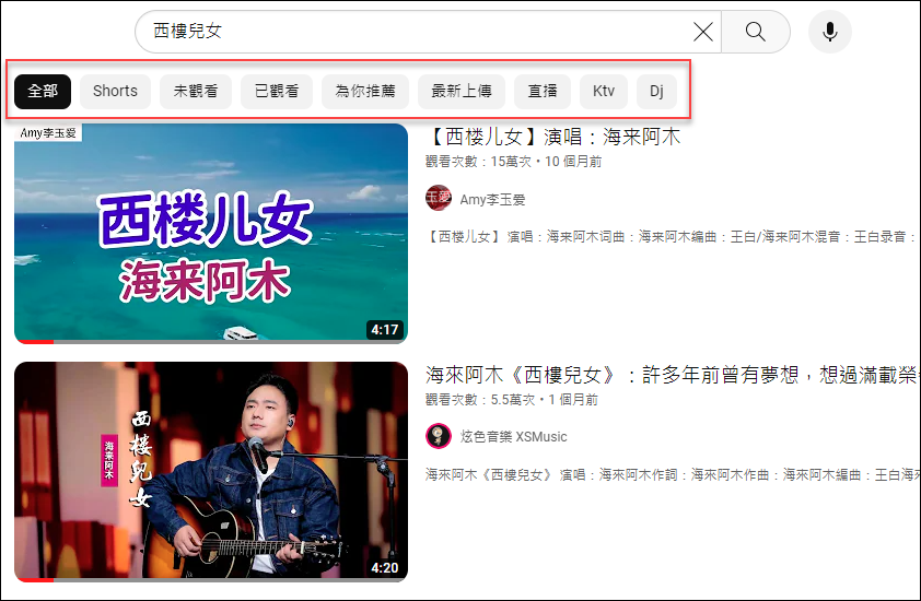 篩選:全部、Shorts、未觀看、已觀看、為你推薦、最新上傳、直播、Ktv、Dj