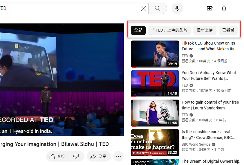 例如:搜尋「TED」