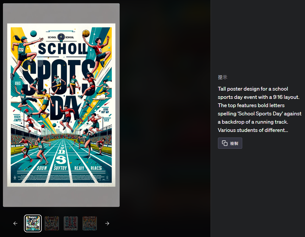 例如指令:設計一張學校運動會適用的海報,版面為9:16。