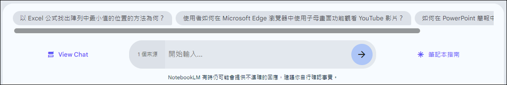 當你點選:筆記本指南,可以使用其預設的生成指引。(本例:只選擇一個來源,因此會以這個PDF檔內容來對話。)