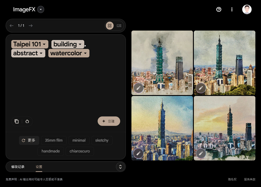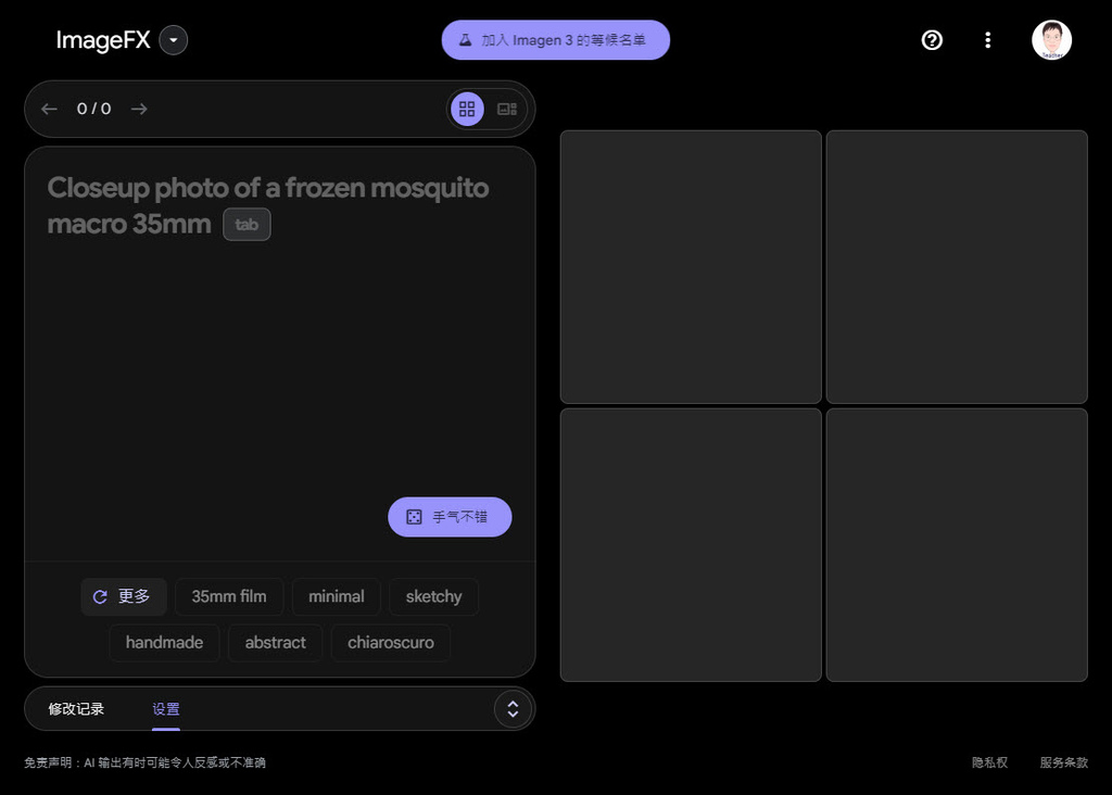 網址:https://aitestkitchen.withgoogle.com/zh/tools/image-fx