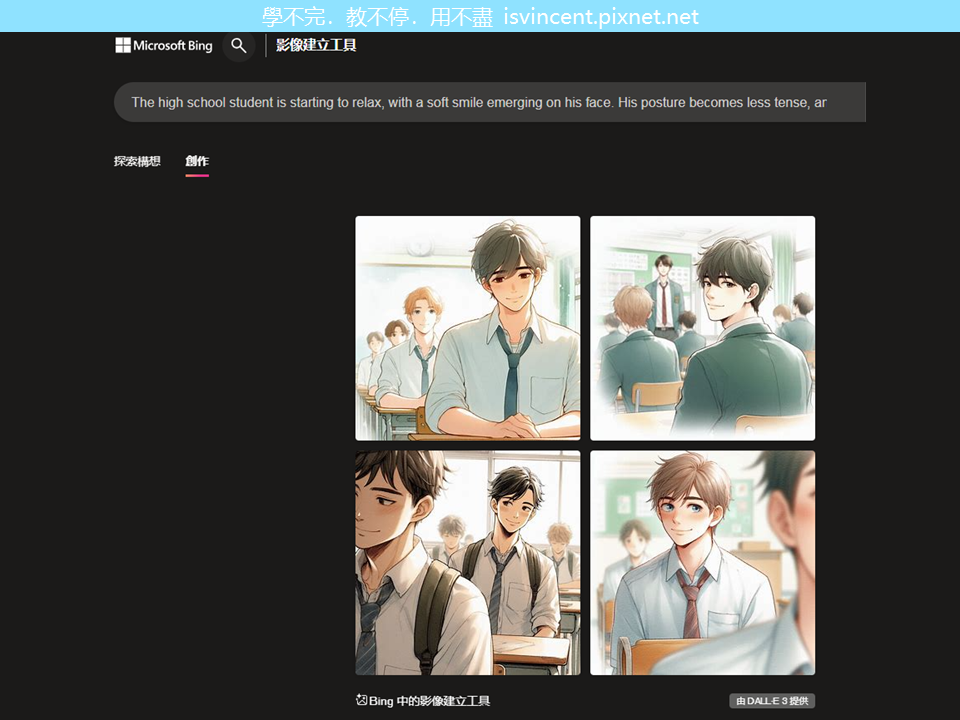再利用提示詞在 Microsoft Imagae Creator 中將圖片製作好: