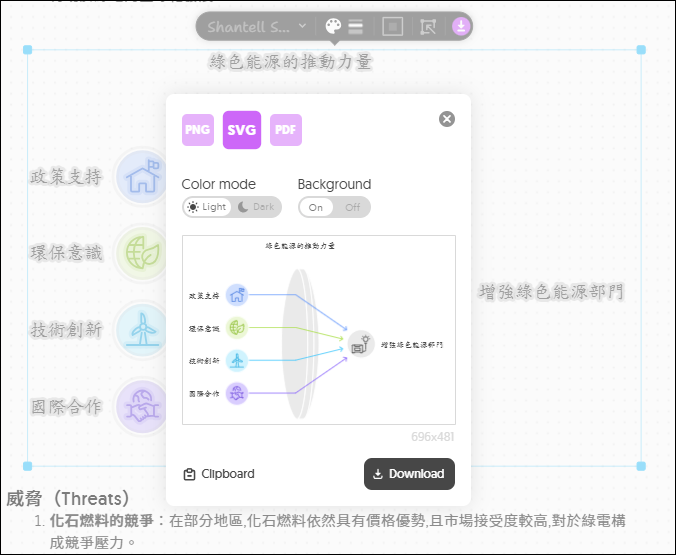 如果想要在 PowerPoint 中修改圖片內容,則可以點選:SVG,下載成 SVG 格式圖片。