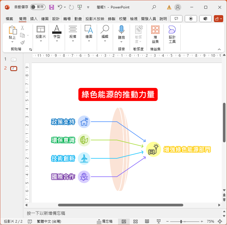 如果要在 PowerPoint 中使用,則也是在投影片中直接按 Ctrl+V 鍵貼上即可。