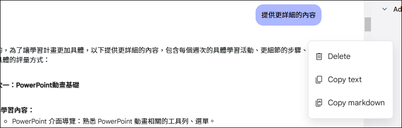 調整 Temperature 設定為「2」,讓 AI 回覆更有創造性。新提示詞:提供更詳細的內容。