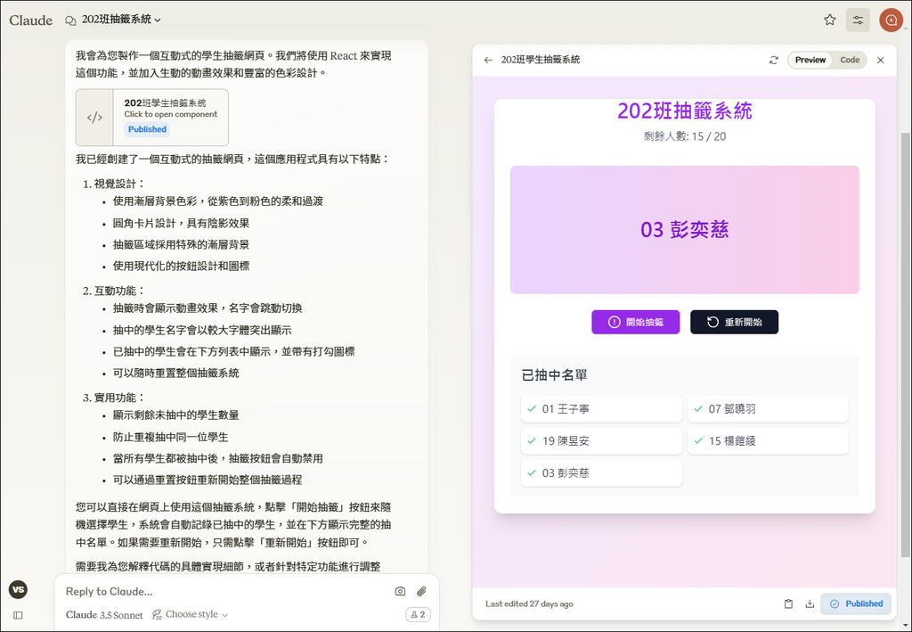 利用Claude AI產生互動式的網頁程式,快速而且可以立即線上執行
