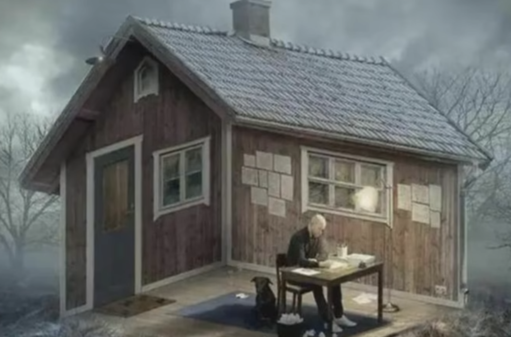 提示詞:你能繪製這種視覺圖片嗎?這張視覺圖片,有時看起來人在屋內,有時看起人在屋外。