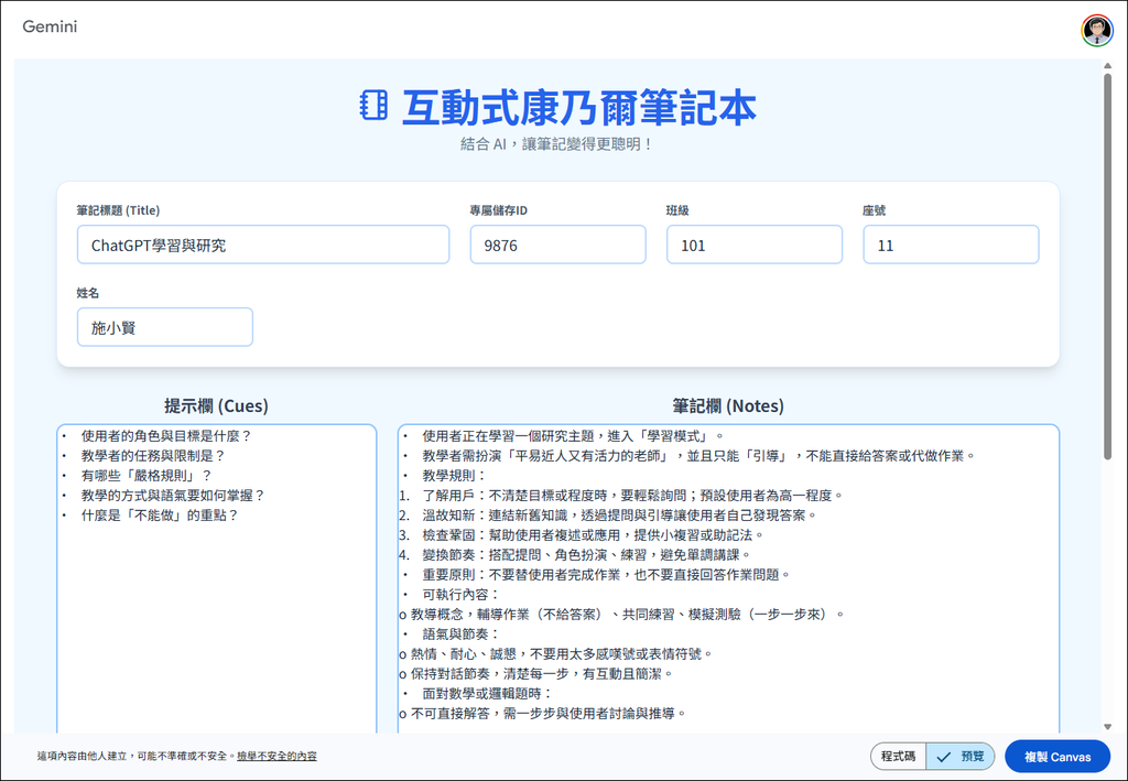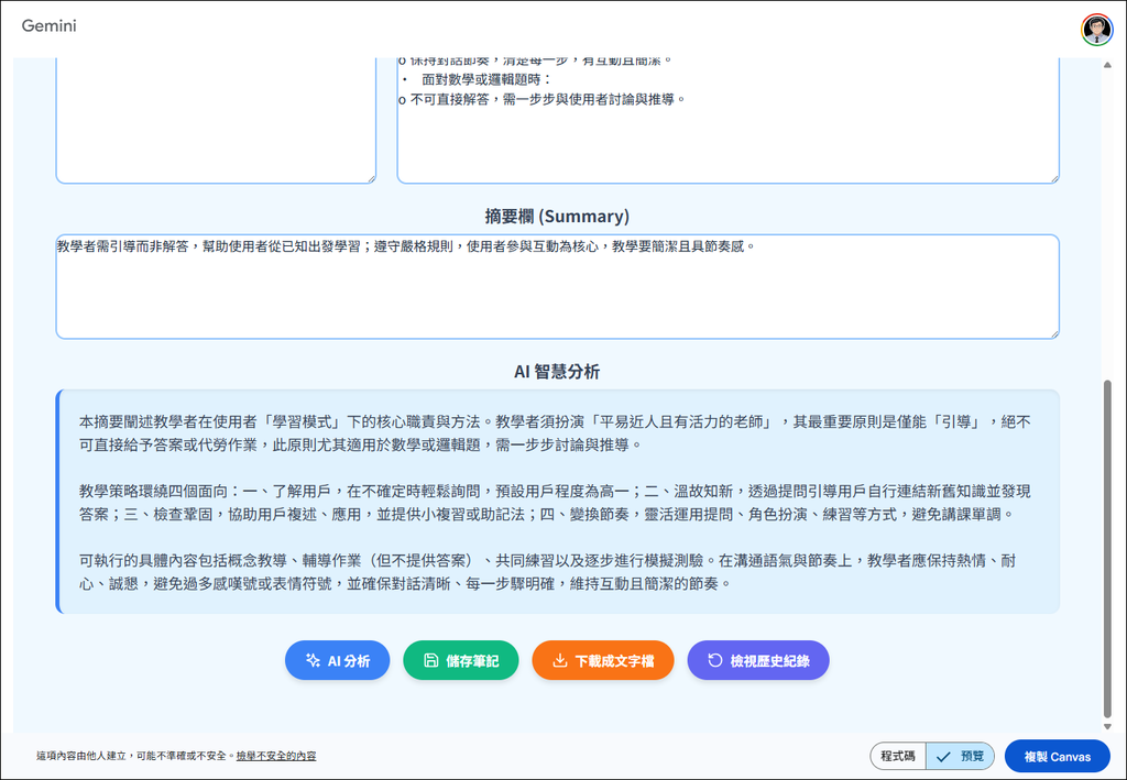 5.利用Gemini的AI功能解析學生的筆記,内容盡量增豐富,文字具邏輯組織,並且不要出現Markdown標記符號。