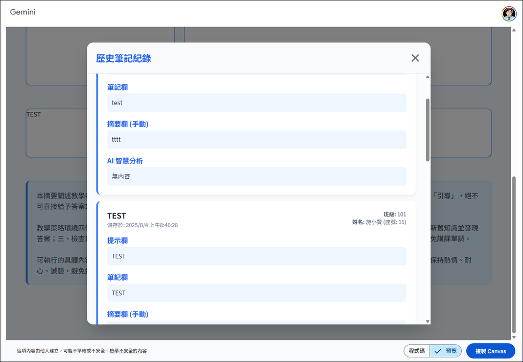 學生如果多做個筆記,而且使用相同ID,可以檢視歷史記錄。