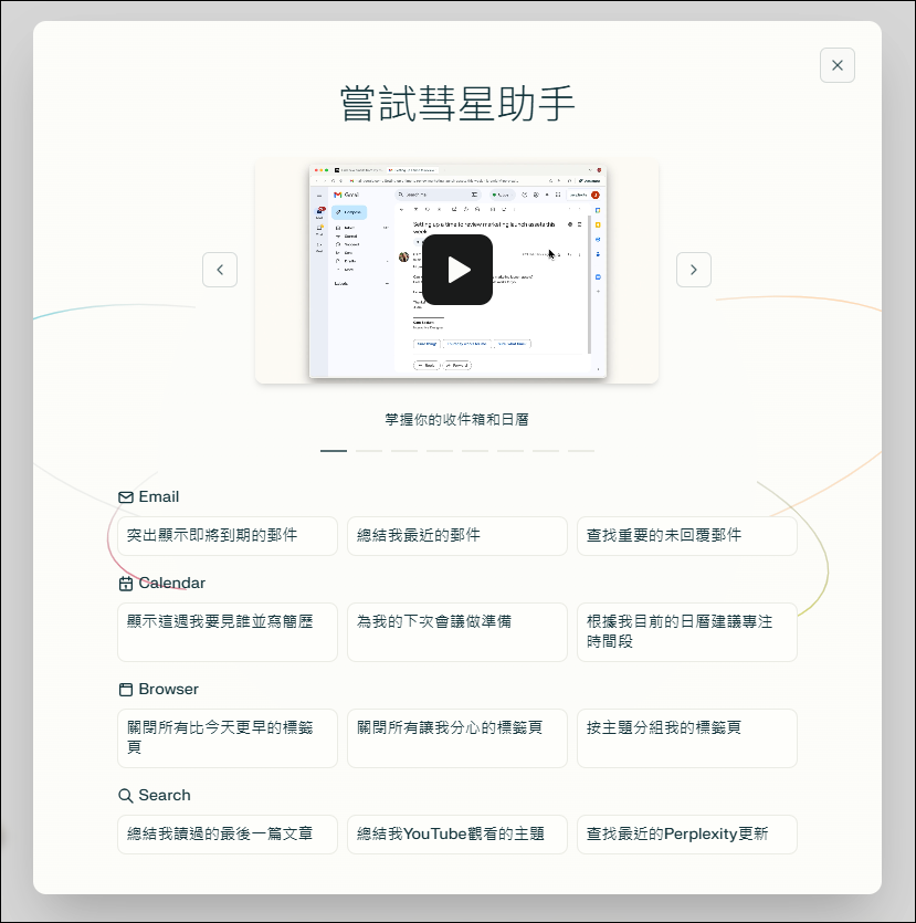 排隊排了很久,終於獲得 Perplexity 的許可,可以試用 Comet 瀏覽器。立刻安裝使用!