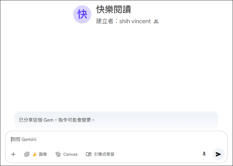 學生可以使用 Canvas 模式、可使用 Gem。無論是教師還是學生,都能從中受惠。現在 Google Gemini 的 Gem 已經開放分享功能,讓教學應用更具彈性與合作性。