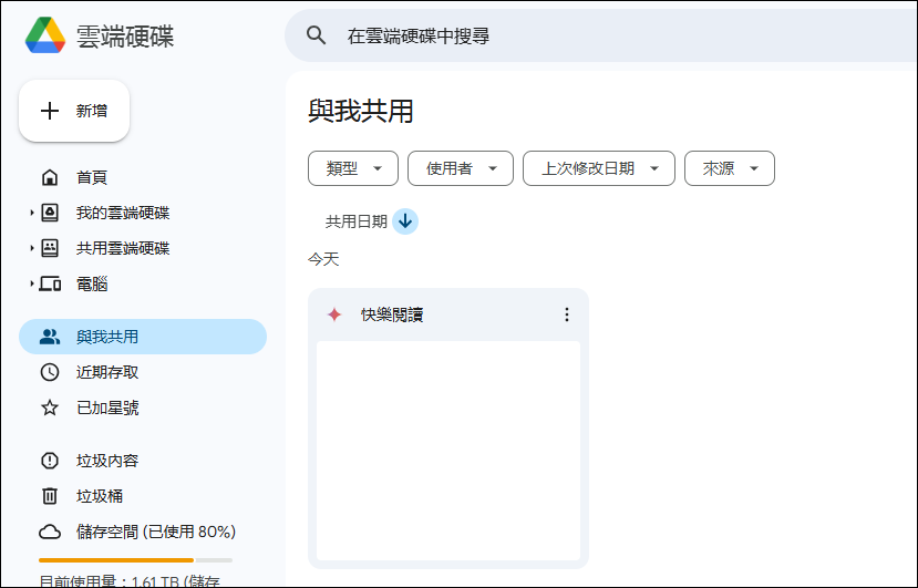 而收到分享連結者,也會在雲端硬碟中的「與我共用」,看到相同的超連結。