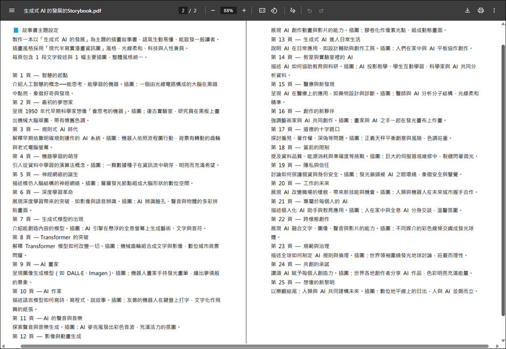 先準備一個 25 頁內容的故事想法,其中每一頁都有指定主題和插圖。