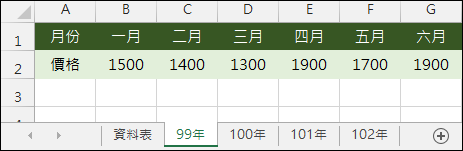 回答網友提問:當資料分處於多個工作表中(例如:99年、100年、101年、102年),如果想要在某一個工作表中查詢各個工作表中的資料,該如何處理。當然各個工作表的格式都是一樣的!(參考以下四個圖)